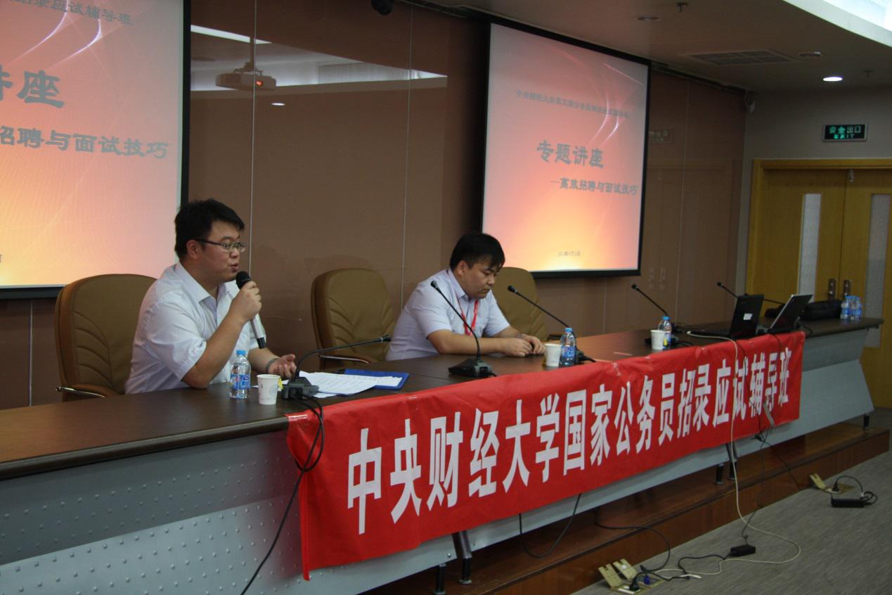 9月28日下午三点,“深度辅导”系列讲座之三——《高效招聘与面试技巧》专题讲座在学术会堂706举行,讲座一方面对刚结束的无领导小组讨论进行了总结,另一方面,深入剖析了公务员招录的面试内涵与技巧,理论联系实际,全面促进学生应试能力的提升。