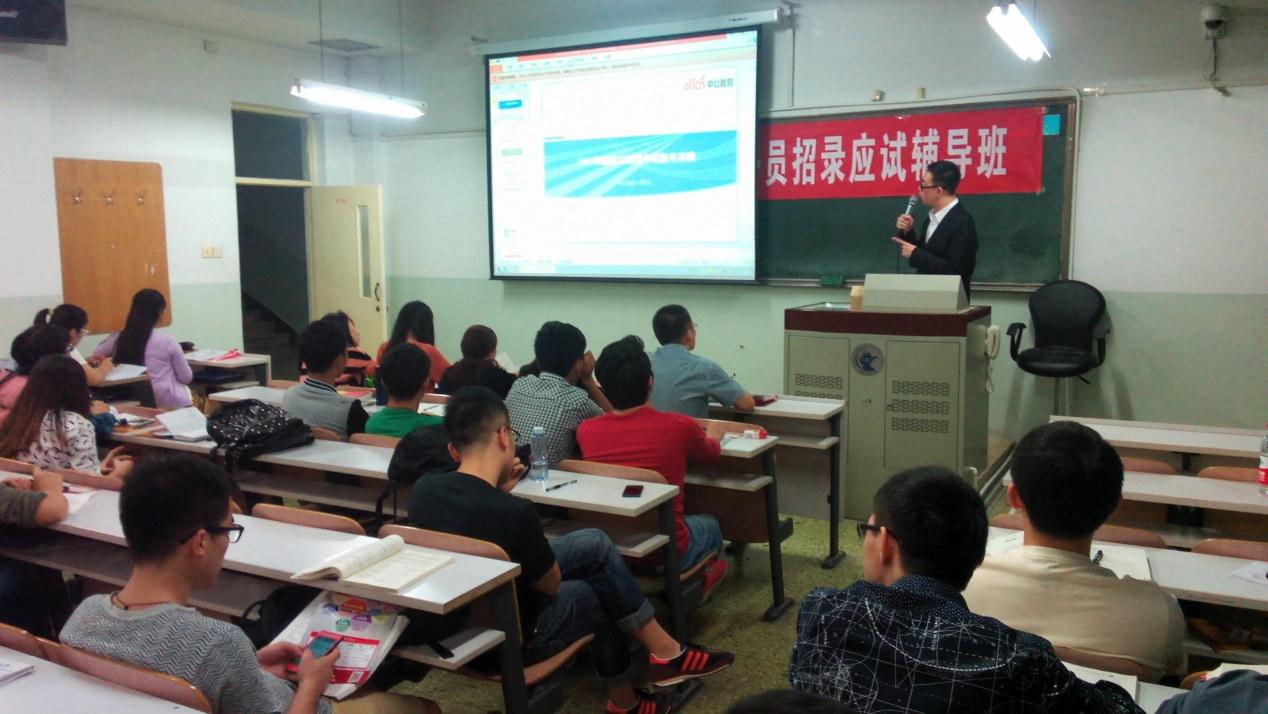 相较前几期辅导班而言,本次国家公务员招录应试辅导班进一步加强了“深度辅导”环节的辅导力度,通过多场中公教育资深专家讲座详解公务员招录的各个要点,讲座与实战衔接紧密,“指导+实践”模式贯穿活动始终。深度辅导以9月18日在学院南路校区主教110举行的《公务员笔试试题分析与答题技巧》专题讲座为开端,其与相继的多场讲座从理论上给予同学们指导,也为之后同学们的实践环节打下基础。