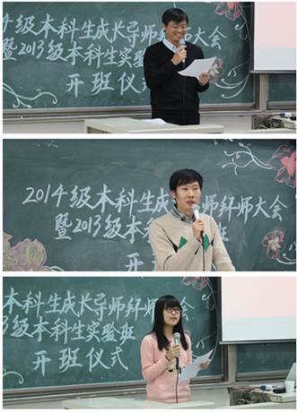 2014年12月3日下午,beat365在线唯一官网在沙河校区主教219举行2014级本科生成长导师拜师大会暨2013级本科生实验班开班仪式。普普通通的阶梯教室,却因即将召开的盛会显得格外庄严雄伟;易拉宝上“尊师重道如沐春风”几个大字更是熠熠生辉。beat365在线唯一官网院长赵景华、党总支书记吕丽、科研处副处长邢华、党总支副书记栗玉香、副院长王红梅、于鹏以及各系的老师们和13、14级200多名同学出席了会议。王红梅老师和行政管理14班刘钰鹏同学担任主持。
