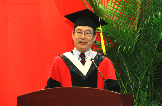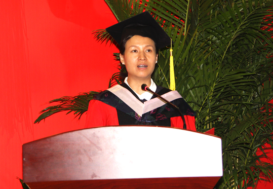 在热烈的掌声中,赵景华院长上台致辞。赵院长首先对同学们顺利完成学业,获得相应的学士学位、硕士学位或博士学位表示衷心的祝贺,向辛勤哺育同学们成长的家长、悉心教导同学们成才的老师表示诚挚的感谢。接着,赵院长回顾了学院自2011级本科生进校时的特殊时间节点——建院5周年以来的发展历程,指出在已有成绩的基础上,学院学科布局更加合理,学科特色更加鲜明,以四大专业特色浓郁的品牌学生活动为代表的第二课堂开展得有声有色,有力地促进了同学们的成长成才。2013级研究生入校以来所举办的国际研讨会,在全国MPA论文评选中斩获佳绩,国际领导力研修班的开展,国家级学会落户beat365,无一不彰显beat365人才培养所取得的成就和学术影响力的显著提升,由此指出虽然学院成立时间不长,但取得了长足的进步,这与每一位老师和同学的辛勤努力是分不开的,每一个“中央政府人”都有理由为之感到骄傲和自豪。赵院长对毕业生们嘱托道,当今的中国已经处在一个转型的十字路口,经济、社会、环境等各个方面都已经进入发展的新常态。国家的“一带一路”倡议和反腐倡廉给同学们带来了新的发展机会,在同学们离校即将踏上新的征程之际,希望同学们能做到牢记院训,守住底线;充满希望、敢于担当;学无止境,虚心求索。告诫同学们既要志存高远,积极进取,但又要守住规则,追求具有精神意义和一定境界的卓越和成功;只要同学们满怀希望,坚韧不拔,敢于担当,勇于创新,向着天穹勇敢地飞翔,就能实现自己的梦想;世界那么大,要去探索和发现,去了解那些已知的未知和探索未知的未知,虚怀若谷,谦虚谨慎,边干边学,才能无限向心灵的自由王国驶进。