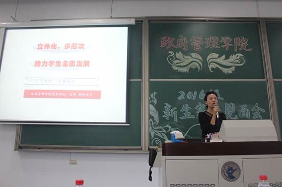 最后城市管理16级班主任刘慧、团总支书记李莎莉、2015级学生辅导员阙希荣、2016级学生辅导员宁钰皓分别上台讲话,表达了对2016级新生的殷切期盼。
