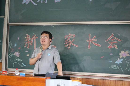 最后,新生班主任代表黄志基老师、宋魏巍老师、张云雷老师依次上台,为家长们送上了班主任寄语。老师们非常有信心能够将新生们领上大学学习的正确道路,同时也希望家长们可以和学校一起,关注学生的身心健康,共同促进学生的全面发展。16级辅导员宁钰皓老师和17级新生辅导员黄莎老师也进行了发言,从辅导员角度介绍了辅导员的工作职责,学生的日常管理等,他们承诺会尽其所能地提供学生需要的帮助,家长们尽可以放心。