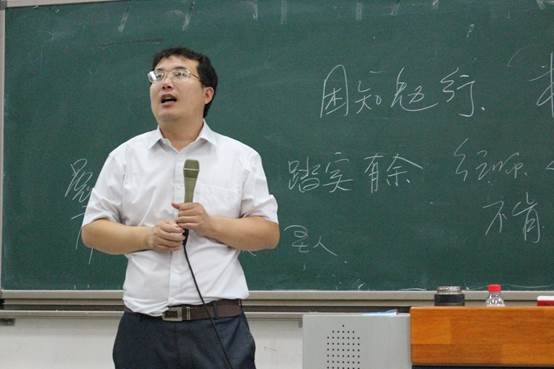 随后,白老师引用王国维的名言指出学习的三重境界:第一重,昨夜西风凋碧树,独上高楼,望尽天涯路;第二重:衣带渐宽终不悔,为伊消得人憔悴;第三重,众里寻他千百度,蓦然回首,那人却在灯火阑珊处。学习是一个自得的过程。他人无法给你灌输。一切知识只能自己理解体会,这也是学习的可贵之处。孔子曰:生而知之者,上也;学而知之者,次也;困而知之者,又其次也;困而不学,民斯为下矣。如今,社会上多为困而知之者。白老师希望同学们可以主动学习,充实自己,成为学而知之者。