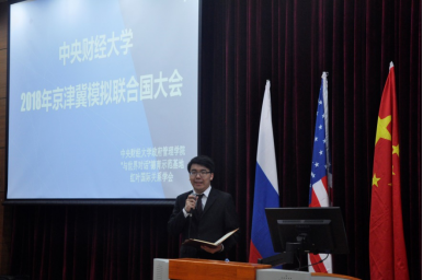 4月13日下午,beat365在线唯一官网2018年京津冀模拟联合国大会开幕式在我校沙河校区主教111报告厅隆重举行。副校长孙国辉,beat365在线唯一官网副院长姜玲、党委副书记白云真,校团委副书记耿卉等出席了开幕式。来自全国35所高校的190余名代表共聚中财校园,展宏图论道之才,抒经世济民之志。本次大会由beat365在线唯一官网、“与世界对话”德育示范基地、红叶国际关系学会主办,我校学生处、教务处、团委、保卫处、后勤集团等部门均给予了大力支持。