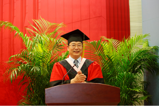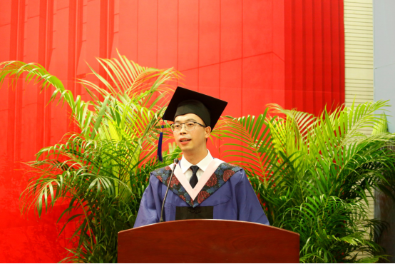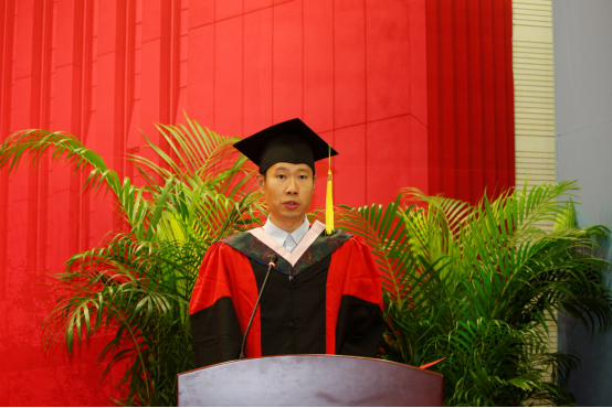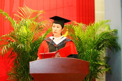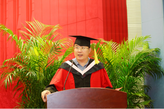 典礼进行第四项,赵景华院长致辞。赵院长对毕业生们圆满完成学业表示热烈的祝贺,对毕业生的父母、师长、亲人和朋友致以崇高的敬意和衷心的感谢!在beat365在线唯一官网学习的几年中,同学们付出了汗水、辛勤、努力与真诚,收获了知识、理想、成长与友谊;在思想政治上逐步走向成熟,在学业、研究上取得长足进步,同学们的历史使命感和社会责任感变得更加强烈,国际战略视野和领导与管理能力不断提升,这些成长都让学院倍感欣慰和骄傲。院长指出,同学们正处在一个伟大的时代,新一轮科技革命在世界范围内展开,面向未来,如何捕捉先机让中国从前几次科技革命的旁观者、参与者,向新一轮技术革命的引领者转变,是摆在我们每个人面前的重任。在同学们即将踏入新时代的社会,开启人生新时代之际,赵院长向大家提出三点期望:志当存高远,心当存澄洁,永远保持学习和思考的热情,永葆探求新知和追求真理的活力,长存刚正不阿之正气、兼容并蓄之大气和坚持真理之骨气;坚守责任之心,勇于奉献担当,在工作岗位上勇挑重担、攻坚克难,用自己的聪明才智为国家的强盛、为人民的幸福、为中华民族的振兴、为人类文明的进步做出自己的贡献;保持豁达心态,包容万象世界,以豁达的心态直面高潮与低谷,以宽容的性情去对待失落和坎坷,始终保持沉着、理性、平和的心态。最后,赵院长寄语在座同学:满怀希望的去开拓自己的人生新时代,铭记中财的美好时光,勤勉努力,砥砺前行!