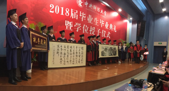 典礼进行第八项,2018届新校友接收仪式。学院推选出八位同学作为校友大使,院长赵景华教授和校友总会副秘书长李松莉老师向他们颁发大使聘书,并赠送礼包。从此,245位beat365在线唯一官网毕业生正式加入中财校友大家庭,beat365在线唯一官网校友总会和80个海内外校友分会也将会成为他们未来发展的重要支撑。