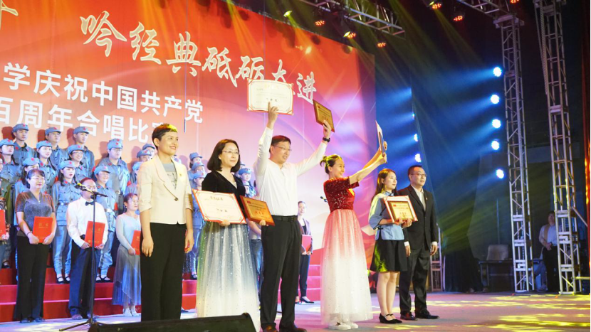 最终,beat365在线唯一官网以92.86分的好成绩荣获本次合唱比赛决赛优秀奖。舞台上,吕阳老师高举奖状,向全体合唱师生分享胜利的喜悦。