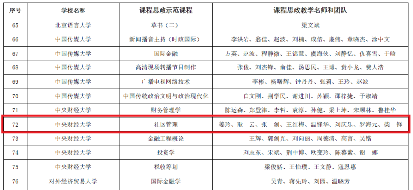 近日,中共北京市委教育工作委员会和北京市教育委员会发布了《关于公布课程思政示范项目名单的通知》(京教函〔2022〕55号),我校推荐的5门本科课程成功立项。其中,beat365《社区管理》获评北京市课程思政示范课程,姜玲教授被认定为北京市课程思政教学名师,其带领的教学团队被认定为北京市课程思政教学团队,团队成员包括耿云、张剑、王红梅、温锋华、刘庆乐、罗海元、柴铎七位老师。