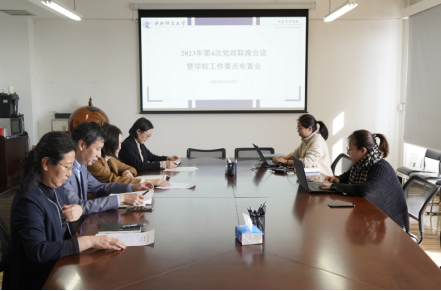 首先,姜玲同志传达何秀超书记在学校工作布置会上的讲话精神。何书记指出2022年是学校发展历史上极不平凡、极不寻常的一年,各项工作向纵深推进,开创了崭新局面。一是推动党的二十大精神入脑入心见行见效;二是立德树人成绩斐然;三是众志成城阻击疫情;四是科研实力持续攀升;五是学科建设内涵推进;六是人才队伍活力彰显;七是社会服务聚焦深入;八是对外开放纵深拓展;九是支撑服务体系渐趋完善;十是全面从严治党引领保障。2023年是全面贯彻落实党的二十大精神的开局之年,是贯彻落实学校“十四五”规划的承上启下之年,新一轮“双一流”建设的奋进之年。何书记从三个方面对学校2023年度重点工作进行部署。一是“一条主线”贯穿全年,照“亮”初心之光。全校上下要紧密围绕学习宣传贯彻党的二十大精神这条主线,将学习宣传贯彻工作作为长期政治任务,贯穿2023年工作全过程、各方面,推动习近平新时代中国特色社会主义思想和党的二十大精神入脑入心,推动学习宣传贯彻党的二十大精神落实落地。二是“三个聚焦”立柱强基,点“亮”事业之炬。要聚焦党建引领,推进“一融双高”;要聚焦立德树人,做到育人为先、思政为魂、教材为要、以本为本、以研为导、招生培养就业一体联动“六个坚持”;要聚焦守正创新,力争学科生态体系、科学研究能力、人才队伍基础、对外开放格局、社会服务能力、校园文化氛围“六个一流”。三是“三大抓手”一体推进,擦“亮”担当之责。要抓整改补短板、抓改革求突破、抓保障促民生,推进学校治理体系和治理能力现代化建设,推动事业内涵发展、提升管理服务水平。