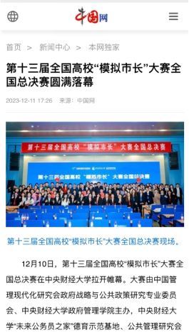 大赛的成功举办让青年学子们在这场新的挑战中主动审视现实问题,站在“市长”的角度关注国家战略和社会热点,通过多种方式开展调研访谈和深入分析,深化了对政府工作的认识,感知了“中国之治”的智慧,集中展现了新时代青年学子“为国为公、立身立言”社会责任感和使命感。