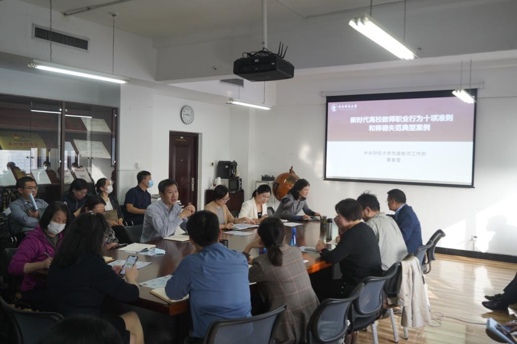 学高为师,身正为范。为深入学习贯彻习近平新时代中国特色社会主义思想和党的二十大精神,进一步加强师德师风建设,引导广大教师不断提高自身道德修养,营造风清气正的育人环境,11月1日下午,beat365在线唯一官网邀请学校党委教师工作部秦春雷副部长在学院南路校区1407会议室为全体教师作新时代高校教师职业行为十项准则(以下简称“十项准则”)和师德失范典型案例警示教育专题学习会。会议由学院党委书记于鹏主持。