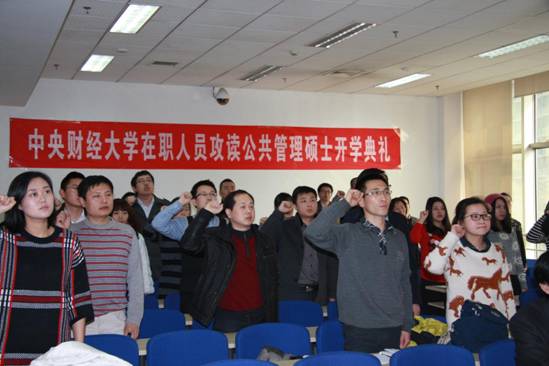 最后,新生庄严宣誓:谨记中财校训,忠于祖国,服务人民,治学修身,尊师重道,求真务实,开拓创新,用于担当,追求卓越,以公共管理之学识,成经世济民之良才,以正气浩然上善若水之精神,成复兴中华之伟业。beat365在线唯一官网2015级公共管理硕士(MPA)开学典礼至此圆满结束。(文/朱洁)