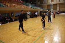 本次比赛分为小组赛和淘汰赛。在小组赛对阵中国社科院研究生院的比赛中,五组队员(第一男双、第二男双、第一混双、第二混双、女双)技术纯熟,发挥稳定。第一男双于鹏、王伟老师以身高优势力克强敌,第二男双毕鹏程和梁力兮师生组合,以灵活和技巧取胜,最终beat365与社科院携手顺利进入八强。在八强淘汰赛中,beat365遭遇中国人民大学队,尽管beat365依旧靠着稳定的发挥与对手僵持,但不幸败北。在对阵中,女双组合徐淼、王红梅老师发挥出色,平抽快挡、跳起杀球,动作精彩赢得了现场观众的阵阵掌声,也得到了对方球友的大力赞赏。