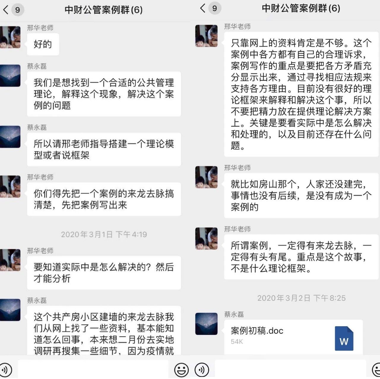 2019年11月10日,我们组建了中财公管案例群,然后开始钻研往届案例大赛作品。在讨论确定了案例的研究方向后,小组成员们开始积极搜集案例素材,阅读《公共政策学》、《公共管理学》等专业书籍,借助互联网平台获得一手资料,设计调查问卷,积极探讨。案例开展遇到困难时,有邢老师指点迷津。在这个过程中,我们相互协作,共同进步,这次案例大赛让我受益良多!