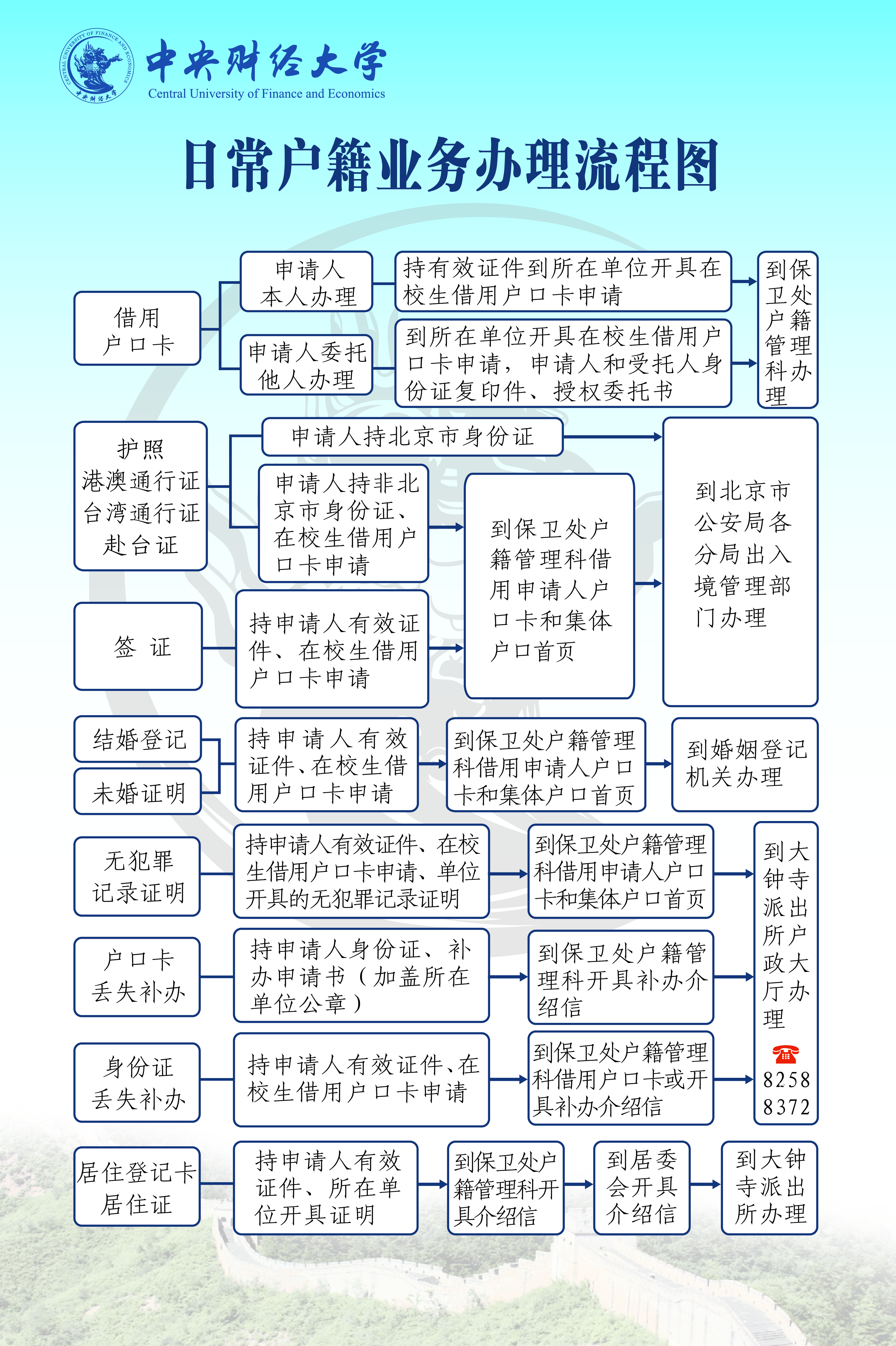 具体事宜可咨询学院南路校区户籍管理科,地点:北一平房19号办公室,电话:62288352。