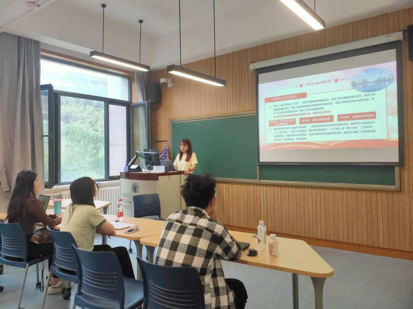 专题党课主要围绕中国区域经济发展战略背景与未来新发展格局展开。江燕同志首先阐释了党的二十大报告中明确提出的“促进区域协调发展”有关要求,引导支部党员准确领会把握其思想精髓、核心要义。然后江燕同志带领同学们回顾中国区域经济发展经历的各战略阶段,即区域均衡发展阶段为“立国”、区域非均衡发展阶段为“富国”、区域协调发展阶段为“强国”,当前则进一步迈入了区域高质量发展阶段。