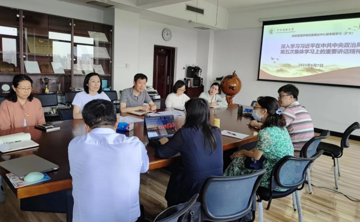 公共事业管理系教工党支部书记周湘林以《把握核心,建设教育强国——深入学习贯彻习近平总书记在中共中央政治局第五次集体学习时的重要讲话精神》为题作领学导读。他指出,习近平总书记在中共中央政治局第五次集体学习时的重要讲话为教育强国的发展指明了方向,加快建设教育强国是全面建成社会主义现代化强国的战略先导,也是以中国式现代化全面推进中华民族伟大复兴的重要支撑。结合习近平总书记重要讲话精神和学院学科建设特点,他从三个方面阐述了对践行教育强国的思考:一是以习近平教育强国思想为指引:加快建设教育强国是重要之路、正确之路、有序之路、可为有路,要坚持党对教育事业的全面领导,建设人民满意的教育体系;二是以人才培养体系改革为核心:加强有组织科研,加强科研成果转化,加强科教融合,加强治理体系建设,加强思政体系建设;三是以教育评价综合改革为牵引:加快创新人才培养,提高教育教学质量,推动高等教育治理体系与治理能力现代化,提升高等教育的治理能力。
