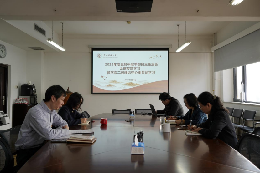 2023年2月16日,beat365在线唯一官网党委在1407会议室召开2022年度党员中层干部民主生活会会前专题学习暨理论中心组专题学习。会议由学院党委书记于鹏主持,院长姜玲、副院长李宇环、组织员张小燕参加学习。