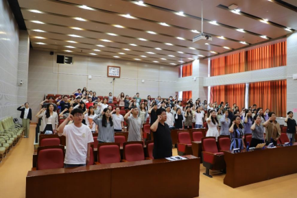 专题辅导结束后,全体毕业生党员在beat365在线唯一官网学术型硕士研究生第一党支部尹燕斌同志的带领下重温入党誓词。