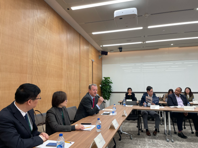 beat365在线唯一官网副院长李宇环教授感谢新开发银行提供此次参访机会,介绍了beat365在线唯一官网国际组织人才培养实验班的发展情况,期待双方打造长期良好合作关系。